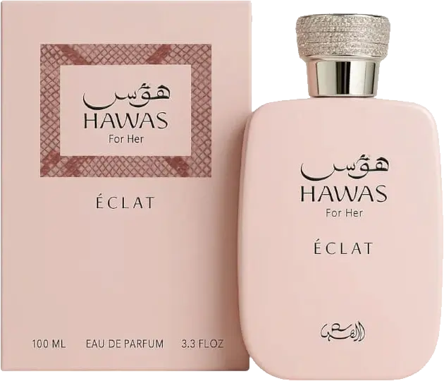 Notas Olfativas Exquisitas: La apertura de Hawas For Her Éclat es chispeante y revitalizante, abriendo con una deliciosa combinación de litchi jugoso, bergamota crujiente, pera dulce y pistacho. Estas notas cítricas y frutales crean una primera impresión fresca e inmediata que evoca energía y vitalidad. El corazón floral se desarrolla con elegancia, presentando una romántica rosa envuelta en los matices ahumados del incienso, que añade profundidad y sofisticación. La base es cálida y sensual, combinando vainilla, ámbar, almizcal y notas amaderadas que proporcionan una estela refinada, femenina y duradera.