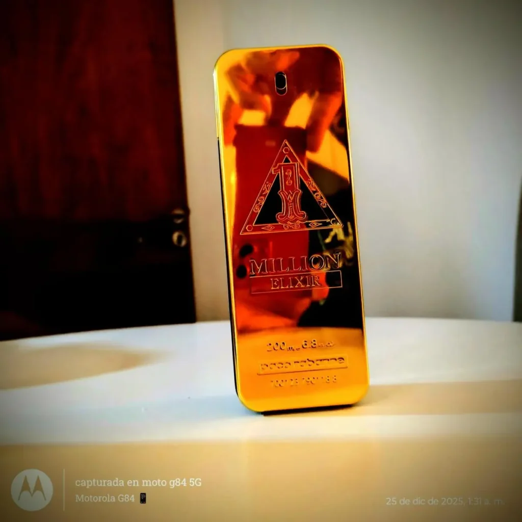 La versatilidad de One Million Elixir lo hace adecuado para salidas nocturnas y eventos especiales, así como para momentos de autocuidado donde deseas sentirte invencible. Su apertura fresca lo hace sorprendentemente adaptable, permitiendo su uso en diferentes estaciones, aunque brilla especialmente en climas más fríos y durante las noches. Descubre toda la colección Rabanne en nuestra tienda de perfumes y encuentra el aroma que define tu esencia. En Perfumes Elixir, tu mejor perfumería en Colombia, nos enorgullece ofrecerte fragancias de lujo como 1 Million Elixir. Somos tu destino confiable para descubrir aromas que transforman tu día a día en una experiencia sensorial extraordinaria. Compra con seguridad y disfruta de la calidad premium que mereces.Acordes del Perfume